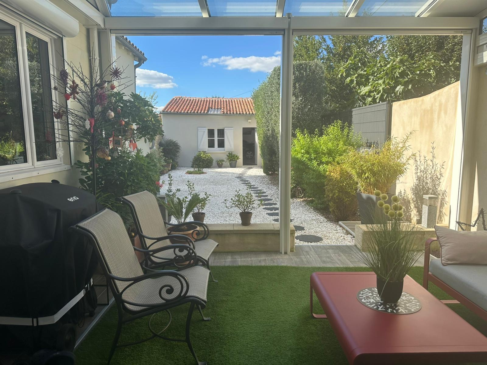 Une cuisine aménagée et équipée donnant sur un beau préau de 2023