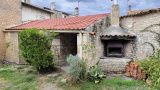 Un jardin clos de murs et arboré avec une petite dépendance, un barbecue, un puits.